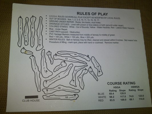 こちらがそのスコアカードのレイアウト図。10番ホールは長いホールの絵になっています。