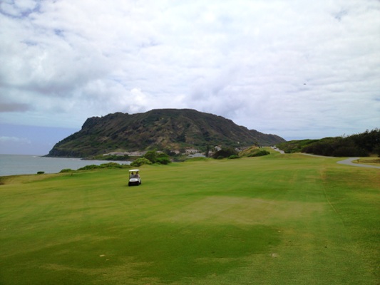 距離ある真っ直ぐなパー4。右には海岸線があるカネオヘクリッパーのシグネチャーホールです。