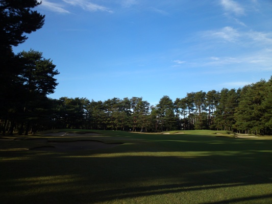 Aグリーンは左。コースの中央に松の木が生えてます。