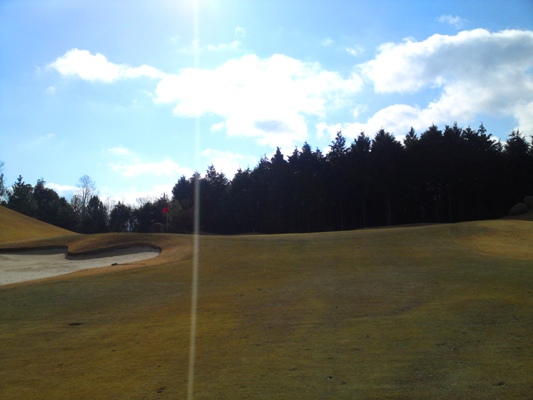 右のフェアウェイから左のグリーンを狙って2オン。2パットのパー。