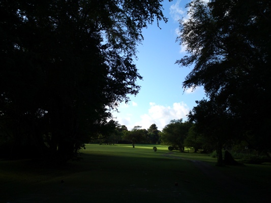 先客は白人のゴルファーが一名。まだスタート準備中でどうやらバッグを担いでラウンドするようなので先にトップスタートさせていただくことに。