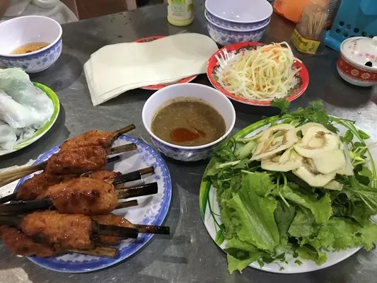 Quán Tài Phú/クアン・タイフーでフエの名物のバインコアイとネムルイをいただきます。