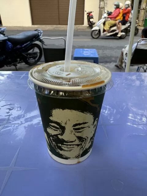 コンデンスミルクの代わりに、塩をきかせたクリームを使う“塩コーヒー”で、ほろ苦いベトナムコーヒーの上に、とろりとした塩気のあるフォームが重なっている。最初のひと口は、クリームの甘さとごく軽い塩味が立ち、あとからコーヒーの苦味が追いかけてくる。甘さだけでなく塩気があるぶん、暑いホーチミンの空気にも不思議とよく馴染む味である。