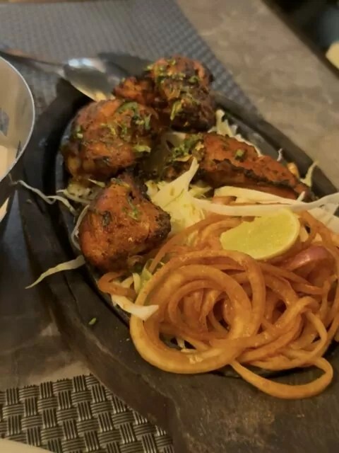 焼き色は深く、香ばしい。一口目は穏やかだが、後からじわじわと辛さが追いかけてきて「ああ、インドに来た」と実感させてくれる。