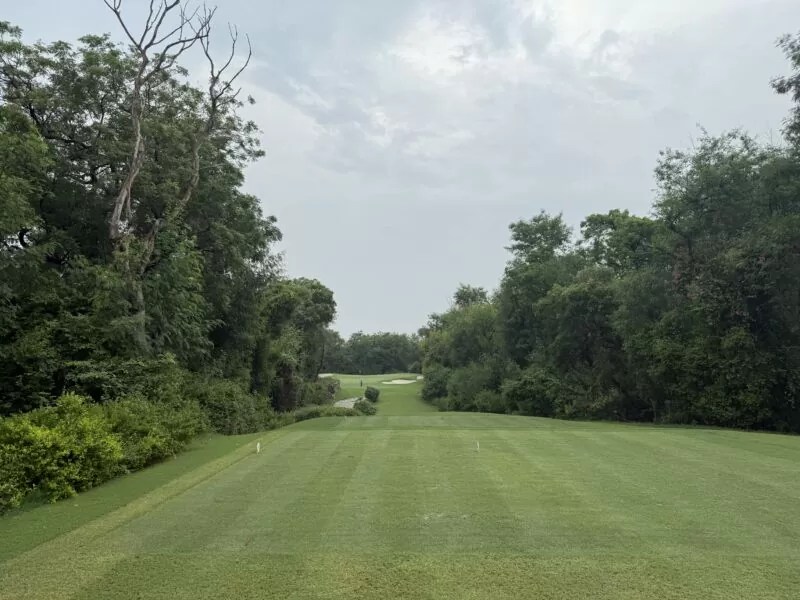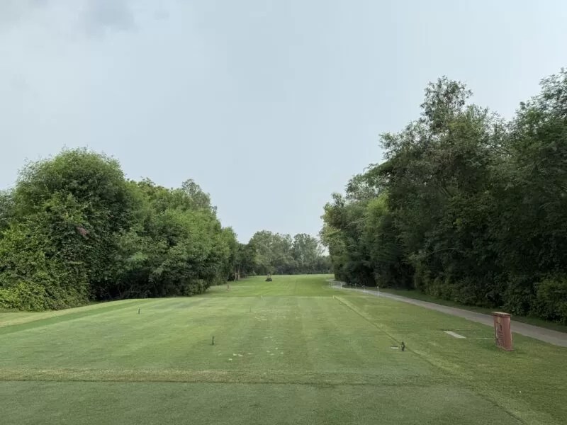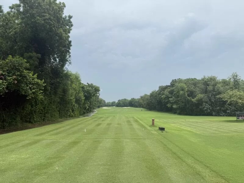 ストレートなパー4。セカンドは左側の木を避けるためにティーショットは右サイド狙い。