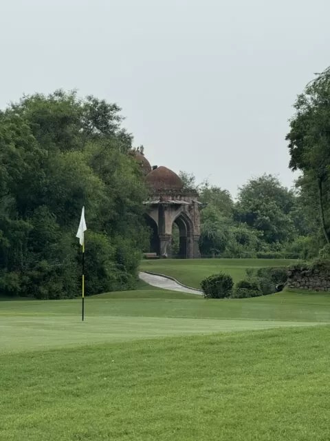 デリーゴルフクラブは遺跡に囲まれた独特の雰囲気があり、落としどころを考えないと木がスタイミーになる。戦略性があって面白いコースだった。