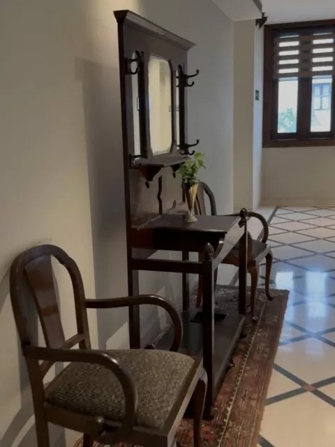 廊下に配置されている椅子や扉のデザインにも歴史の重さを感じる。
