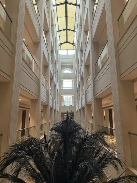 館内は、伝統的なコロニアル様式の建築美と最新のモダンなインテリアが融合した空間だった。