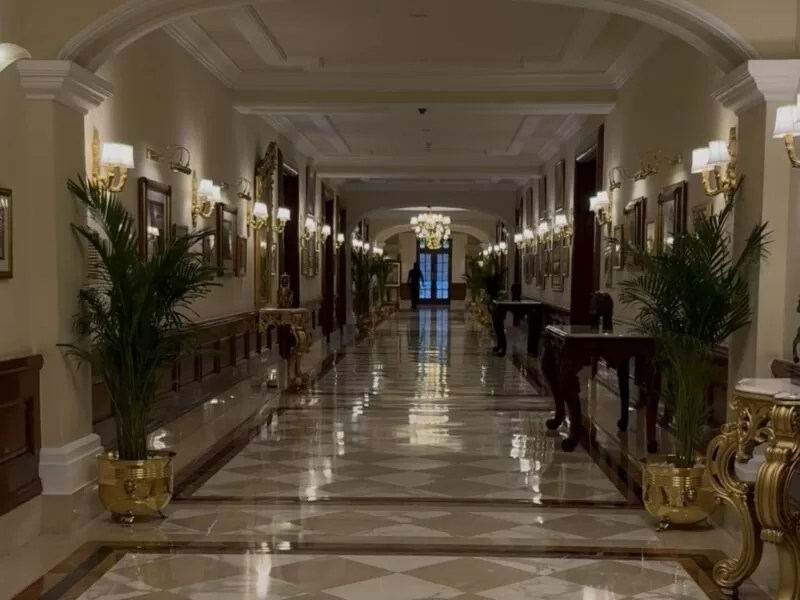 長い通路、大理石の床、控えめな照明。歩いているだけで心地よい。
