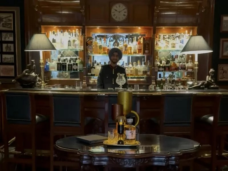 このホテルのメインバーは「1911 Bar」だが、おススメは通路の反対側にある 「Patiala Peg」。