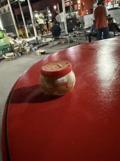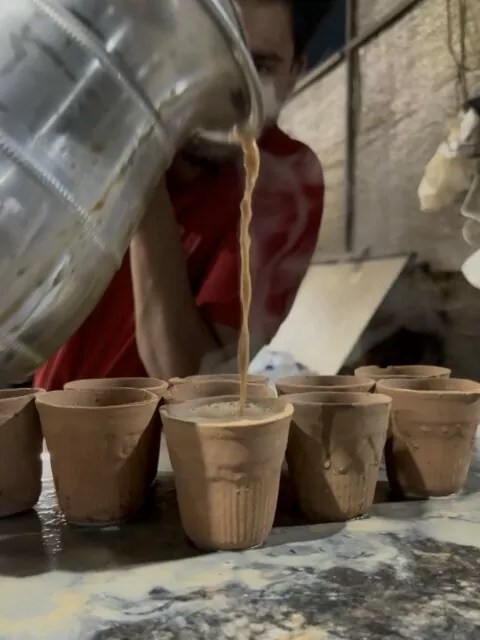 ダーバーでのトイレ休憩中に飲んだのが、使い捨ての素焼きの土器「クルハル」に注がれたチャイだった。