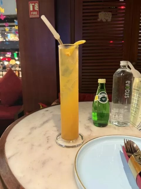 Anardana Tangy Liitという5種類のホワイトスピリッツと自家製マサラが入ったカクテルをオーダーしたらLiitというのが1リットルという意味だったようで量が多いオレンジにちょっぴりマサラが入っているカクテルが出てきた。