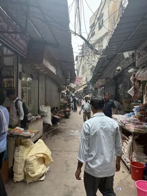 荷車、バイク、人、そして上空を走り回る配線。インドの都市の「圧」がそのまま凝縮されている感じがする。