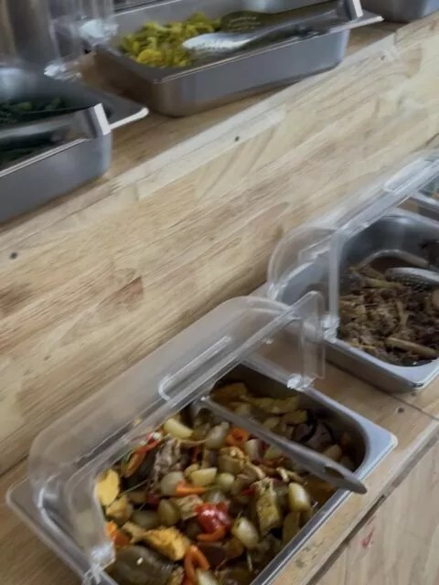 店に入ると、料理がずらりと並ぶ。ビュッフェ形式。