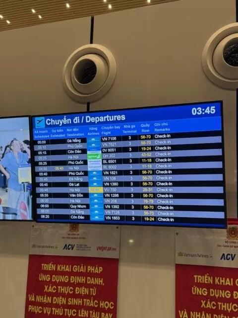 タンソンニャット空港は混雑していることが多い。しかも4連休で、フライトは朝5時40分。念のため2時間前に到着した。ところが新ターミナルということもあってか、チェックインは驚くほどスムーズに完了し、4時にはゲート前まで来られた。