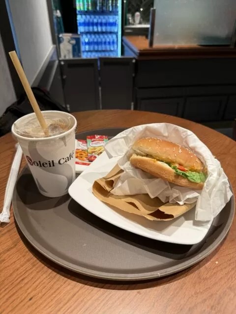 ベトナム語でBánh Burger gà kẹp phô maiと書かれたチキンチーズバーガーと、定番のCà phê đen(ブラックコーヒー)を注文する。