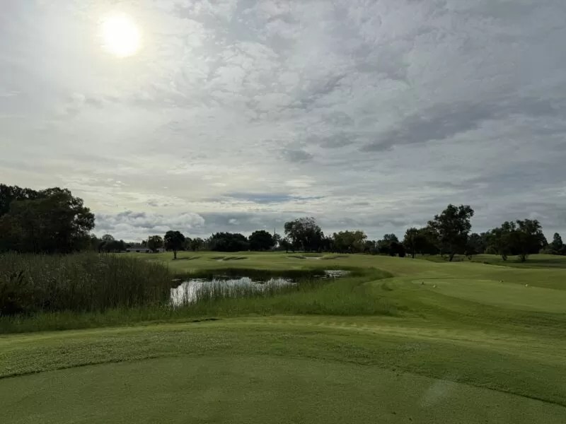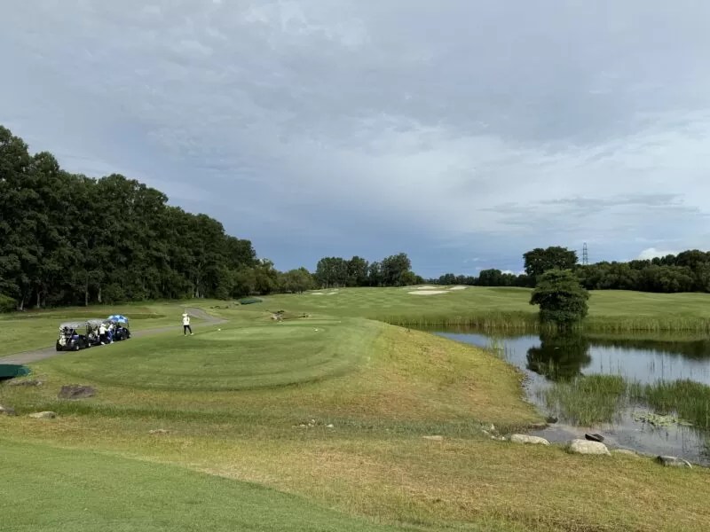 写真はブルーティー(392ヤード)からの風景。ホワイトティーからは距離の短いパー4。