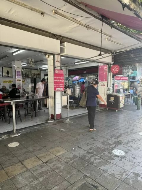 向かったのは、プラトゥーナムで長く知られるGo-Ang Kaomunkai Pratunam(ゴーアン・カオマンガイ・プラトゥーナム)である。1960年にこの地で屋台として始まった店で、創業者の Sombat Pruekpaiboon(ソムバット・プルックパイブーン)は、海南島生まれの父からチキンライスの作り方を教わったという。そこからこの店の味が作られ、後にプラトゥーナムを代表するカオマンガイの名店へと成長していった。