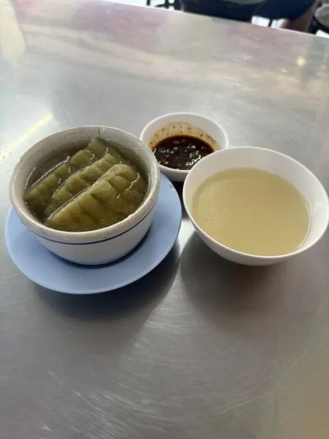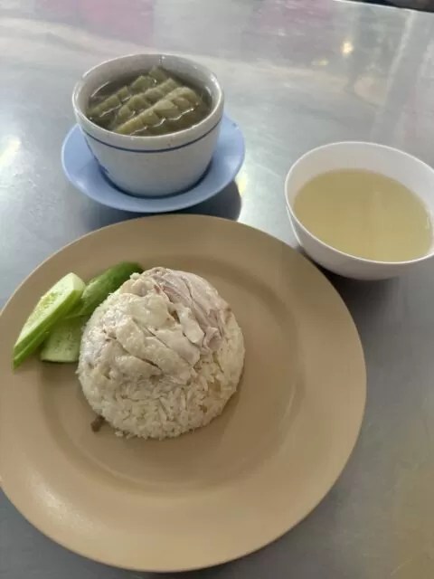 今回はカオマンガイに加えて、苦瓜と豚リブのスープも注文した。しっかり煮込まれた苦瓜のほろ苦さが、朝の目覚めにはちょうどよい。