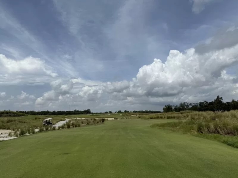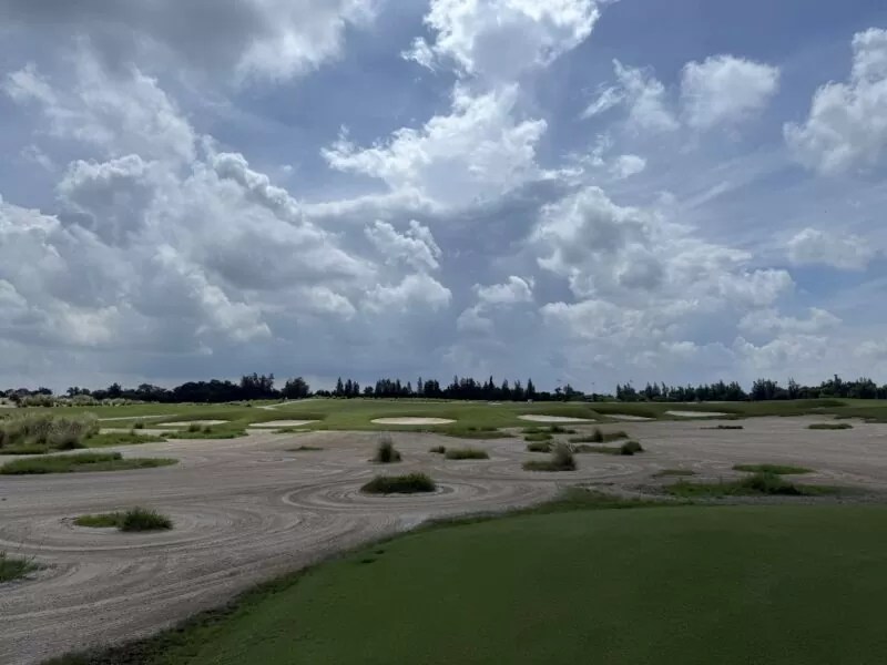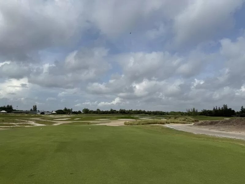 その伝説のコースを、ギル・ハンス2021年にタイで現代によみがえらせたのが、このBallyshear Golf Links(バリシアーゴルフリンクス)である。もともとこの場所には、1991年開場の日系ゴルフ場Kiarti Thanee Country Club(キアタニ・カントリークラブ)があったが、全面改装によって生まれ変わった。