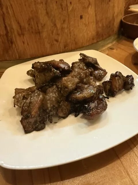 噛めば噛むほどに旨味が出てくる。やはり酒飲みには、柔らかい若鶏よりもハイケイのほうがいい。歯ごたえを楽しみながらゆっくり噛んでいると、鶏の味がじわじわと広がってきて、酒のつまみにぴったり。名護の夜に食べるものとして、いかにもこの土地らしい一皿だった。