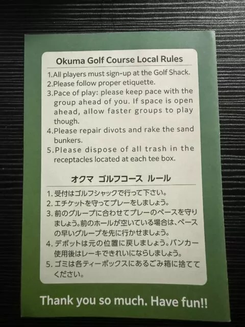 ひとつはコース名で、Habu Linksという名称だと思っていたのだが、スコアカードにはOkuma Golf Course(オクマゴルフコース)と書かれていたこと。